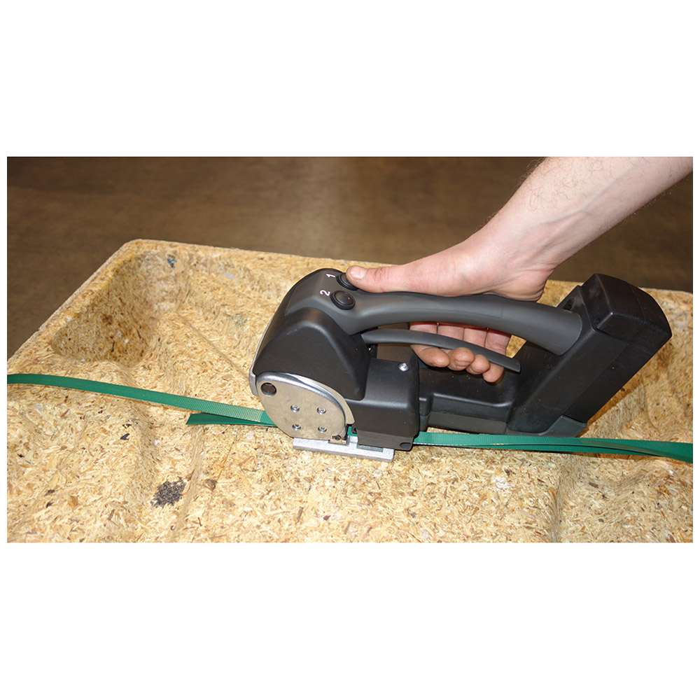 Das moderne Akkugerät ist mobil einsetzbar und eignet sich zur Verarbeitung von PP Kunststoffbänder und PET Kunststoffbänder.
