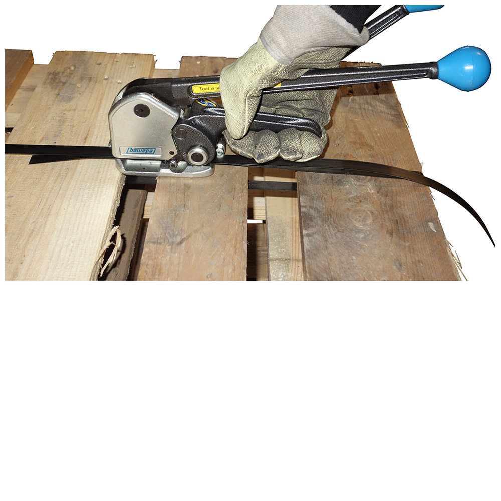 Das hülsenlose Kombinationswerkzeug MK4 ist ein manuell zu bedienendes Werkzeug zum Spannen, Verschließen und Abschneiden von Apex-Stahlbändern. Der Verschluss erfolgt durch eine Verstanzung der Stahlbänder. Das Werkzeug eignet sich sowohl für vertikale, als auch für horizontale Umreifungen eckiger Packstücke. Es kann aufgrund seiner Vielseitigkeit in allen Bereichen der Stahlbandverpackung eingesetzt werden, falls kein Hülsenverschluss notwendig ist. Mit nur wenigen Handgriffen lässt sich das Gerät auf die gewünschte Bandbreite einstellen.